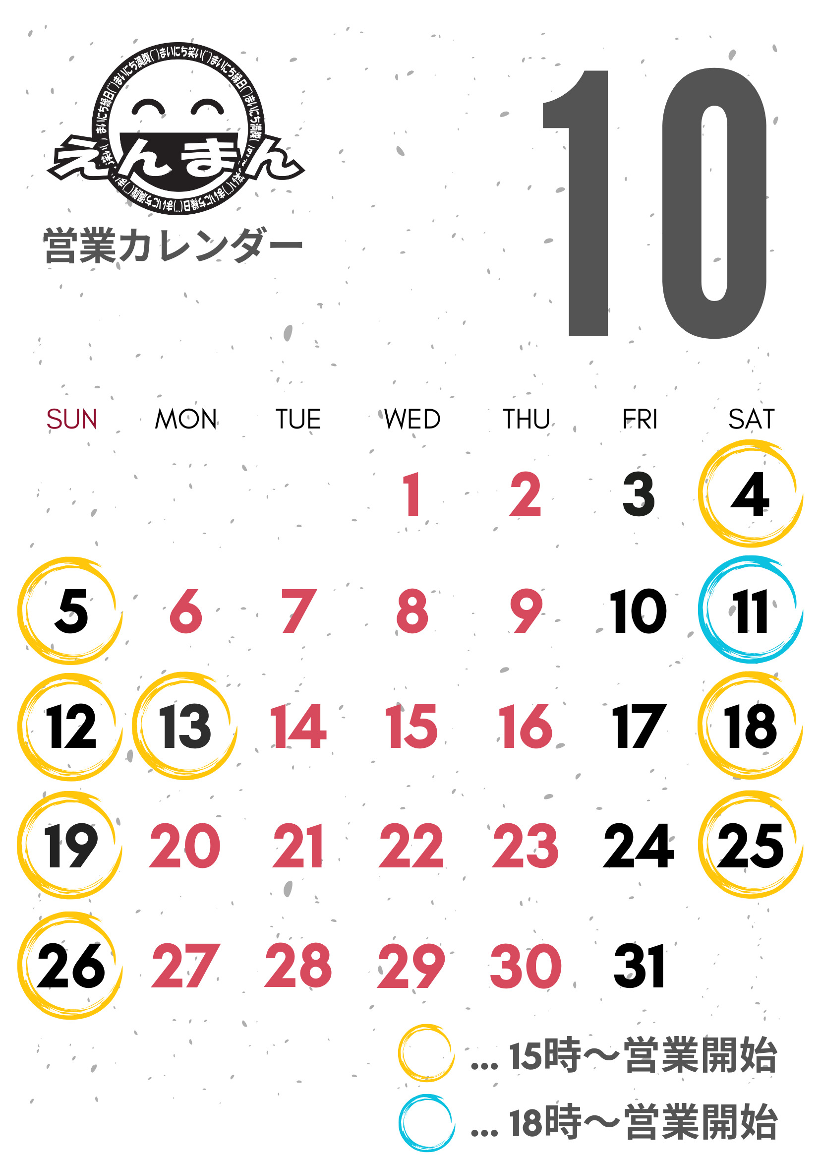 【えんまん】から休業のお知らせです。